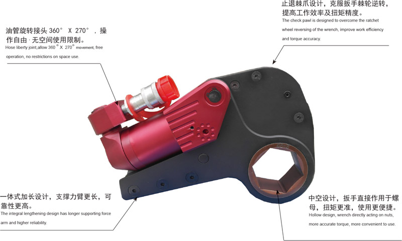 360°x180°可旋轉油管接頭,無使用空間限制,一體式加長設計,力臂更長,更輕便。工作頭與反力支點同軸,完善的受力結構設計,提高使用壽命。
