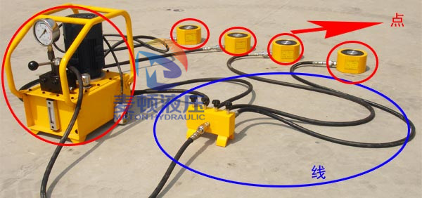 “點”即檢查系統(tǒng)的動力源——液壓泵站和執(zhí)行元件——薄型液壓千斤頂、電動機。然后檢查“線”——動力源到執(zhí)行元件之間經(jīng)過的管路和控制元件。